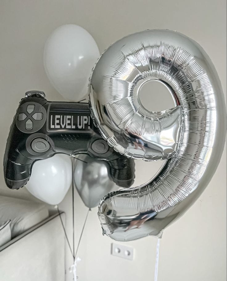 - Фонтан из 5 шаров: 2 белых латексных, 2 хром серебро, Фольгированный шар "Джостик"