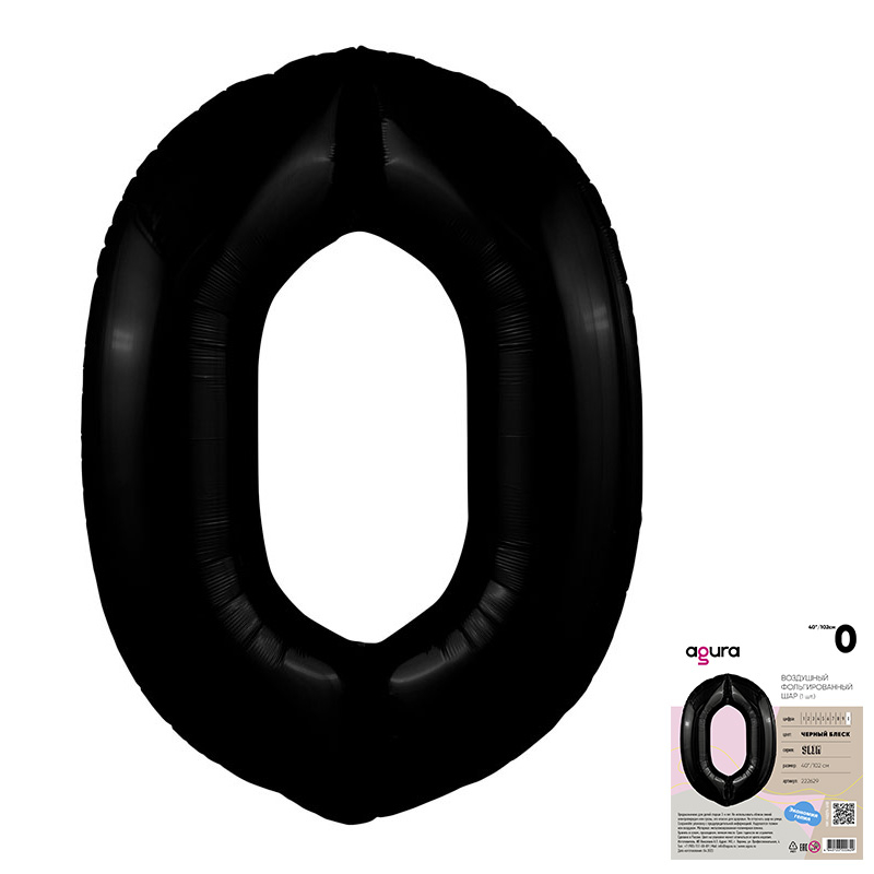 Цифра 0 Чёрная  - Шары и праздники