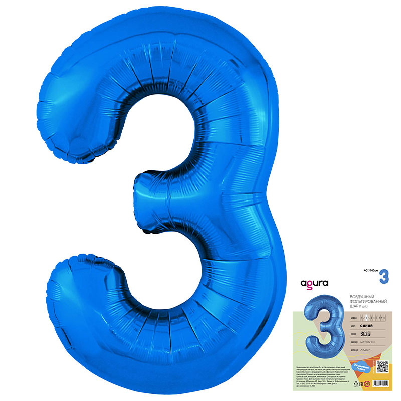 Цифра 3 Синяя  - Шары и праздники