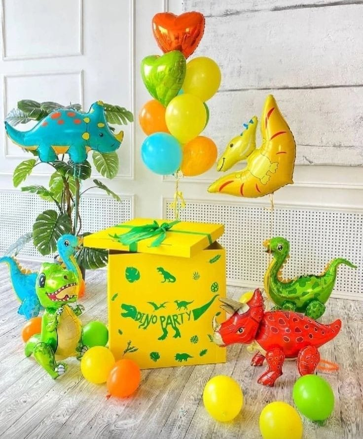 - 1 фольгированный динозавр на гелии