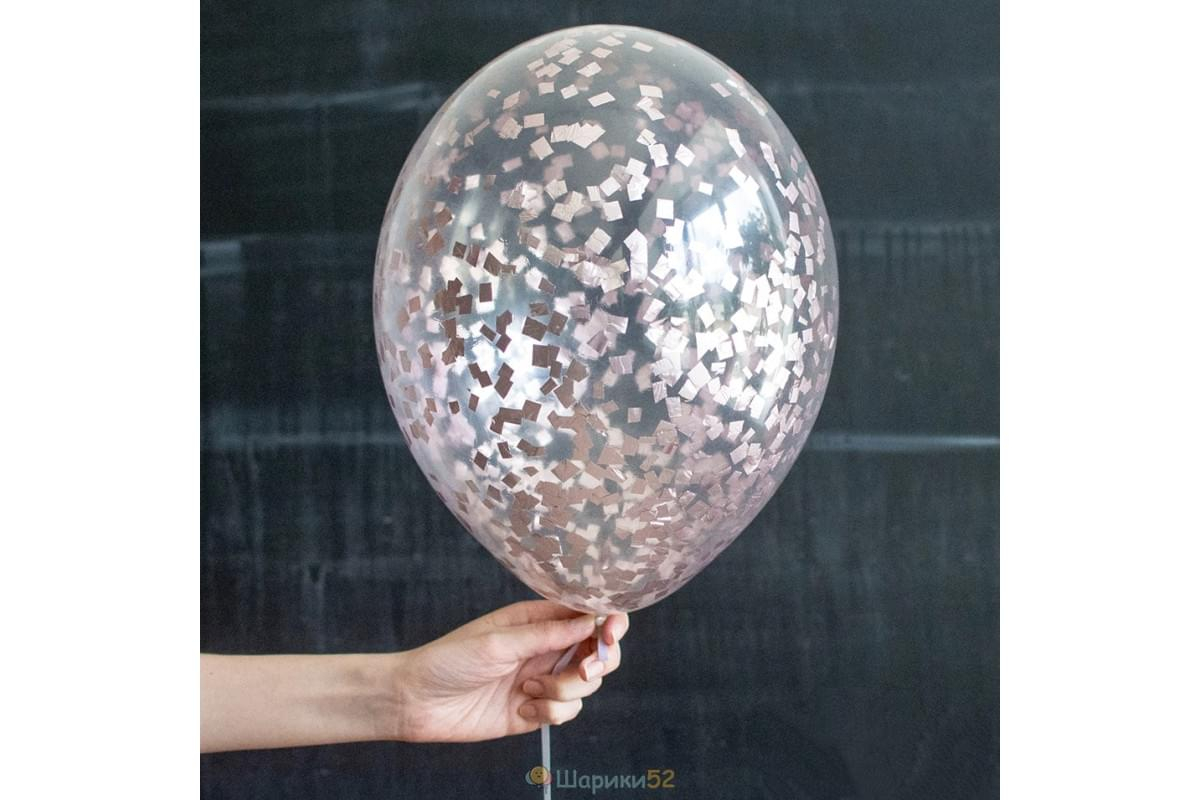 Шар латексный, с конфетти Розовое золото, 12", 30см