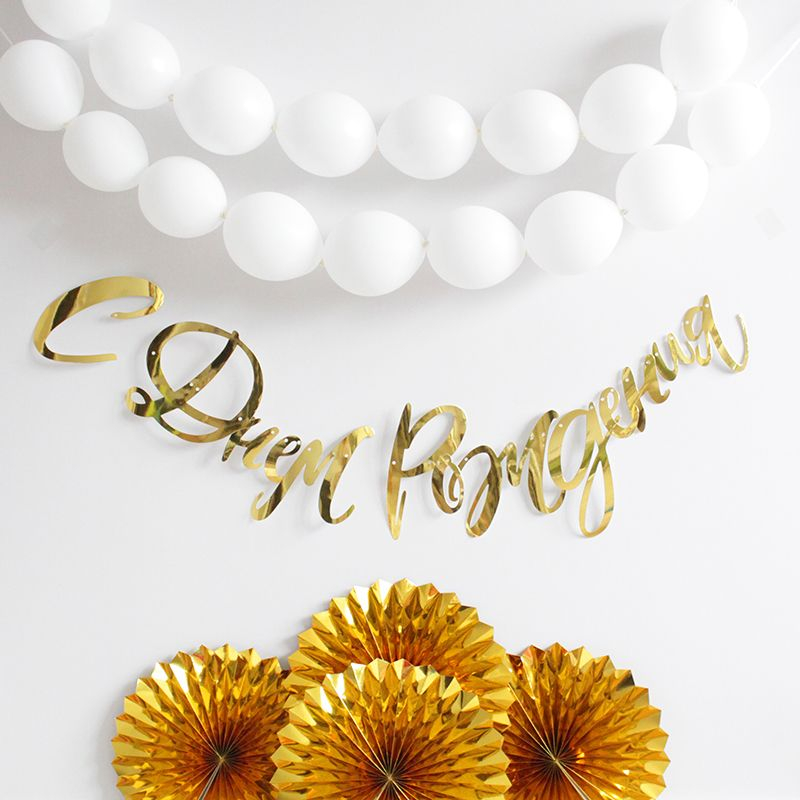 Гирлянда-буквы "С Днем рождения!" Золотая
