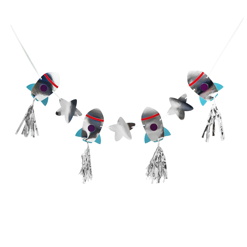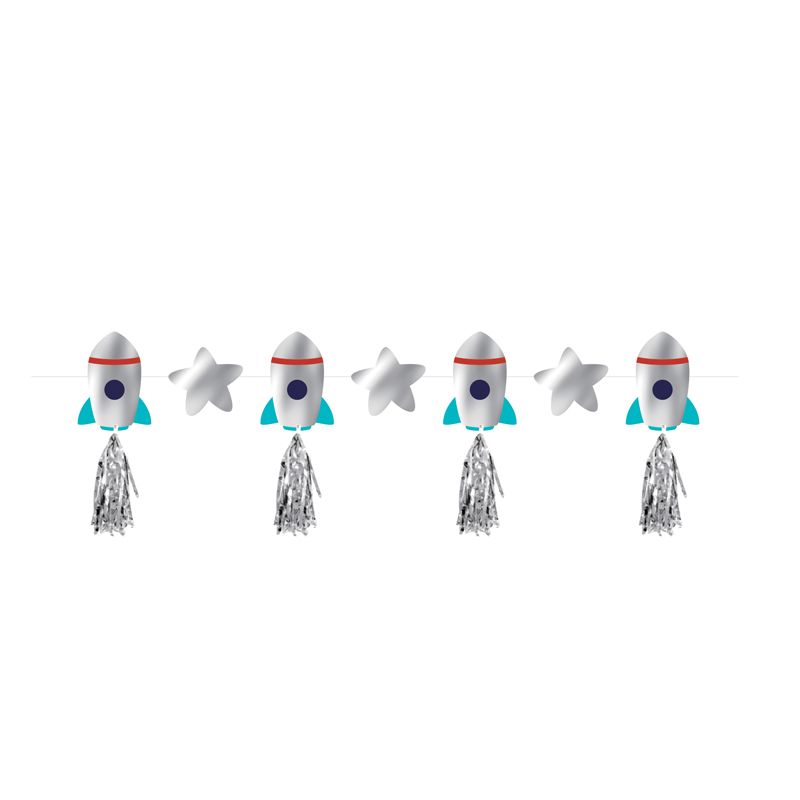 Гирлянда фольгированная с тасселами "Ракета и звезды"