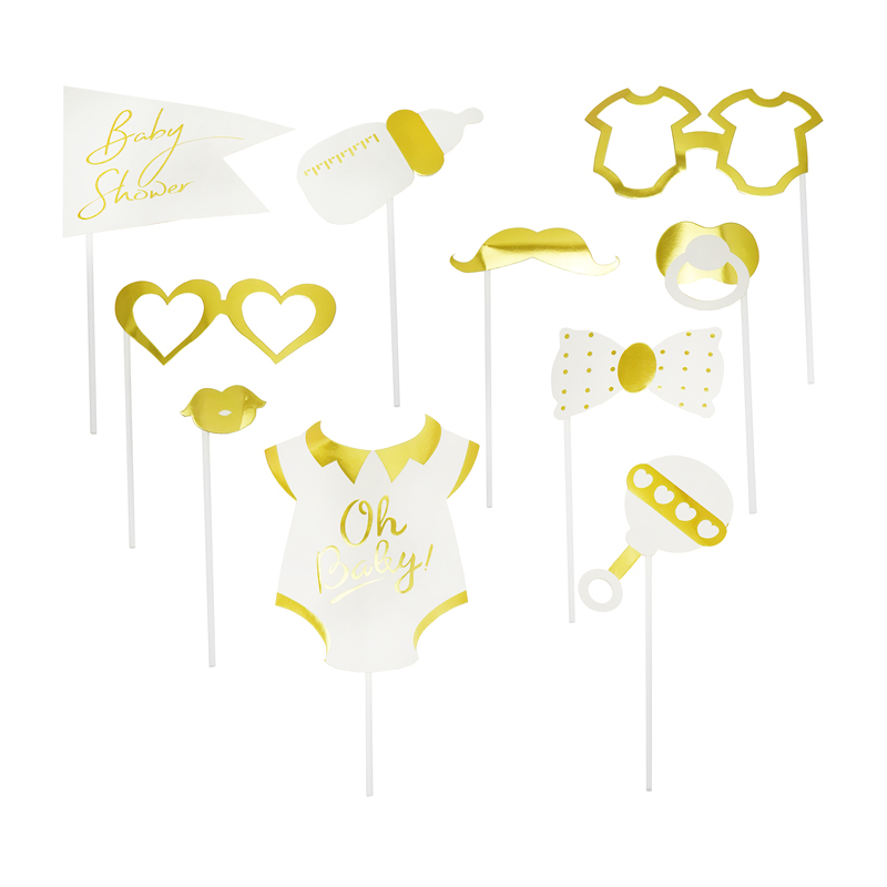 Золотые элементы набора для фотосессии "Малыш" Золотой несомненно, украсят фотографии и оставят приятные, теплые воспоминания о вечеринке.