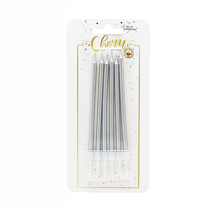 Свечи тортовые классические "Металл" Серебряные с держателями - Шары и праздники