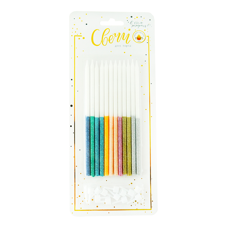 Свечи тортовые классические "Сверкающие половинки" (Ассорти) с глиттером с держателями