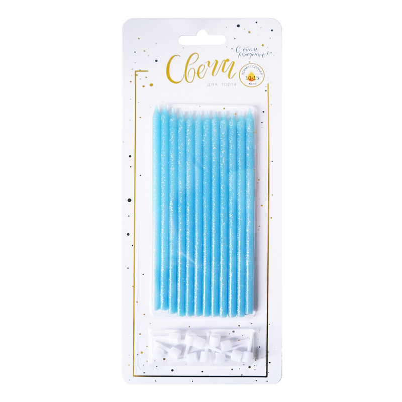 Главная » Интернет-магазин » Товары для праздника » Свечи для торта » Свечи тортовые классические XL Голубые с серебряным глиттером с держателями
